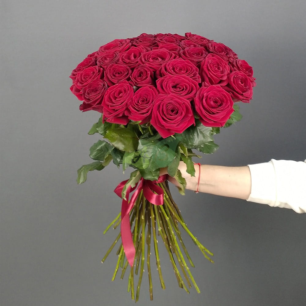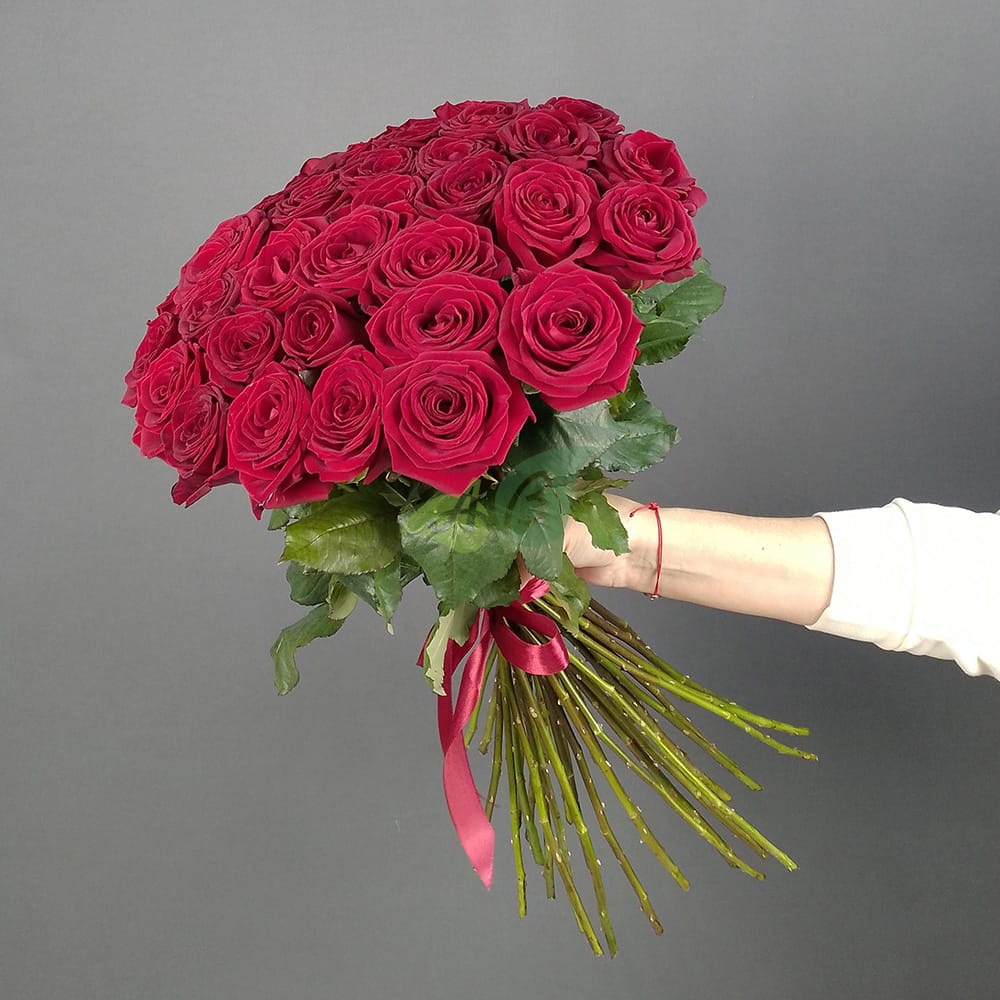 - Роза - 35 штук, цвет - красный, длина стебля - 60 см;